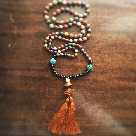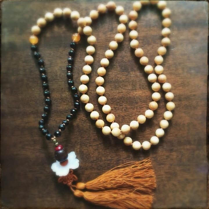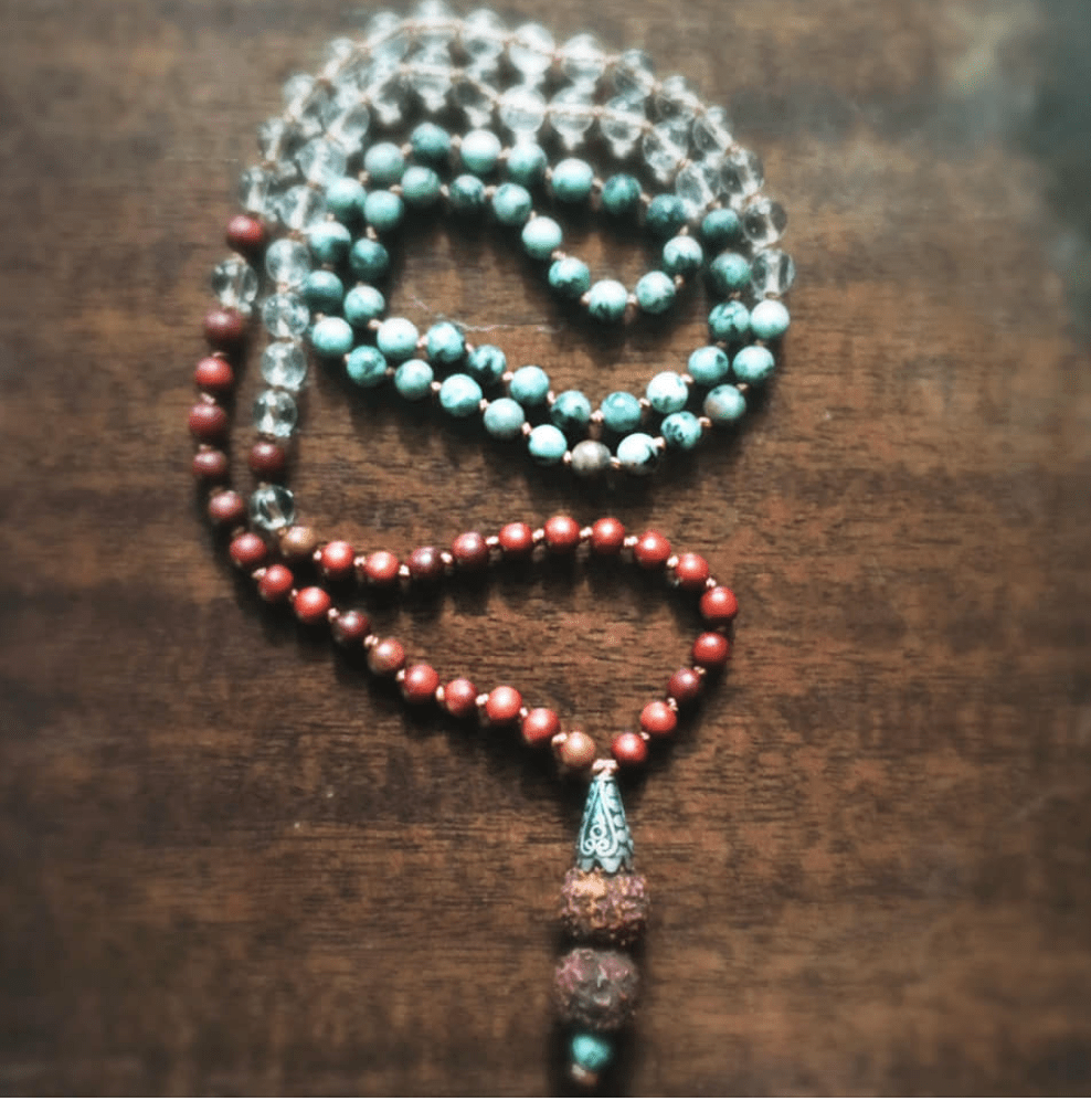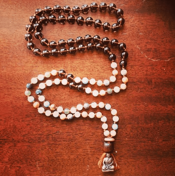 One of my most valued hobbies is making custom 108-bead prayer malas with crystals chosen through my knowledge of their properties/historical uses as well as an intuitive process sitting with the buyer’s intentions and preferences.